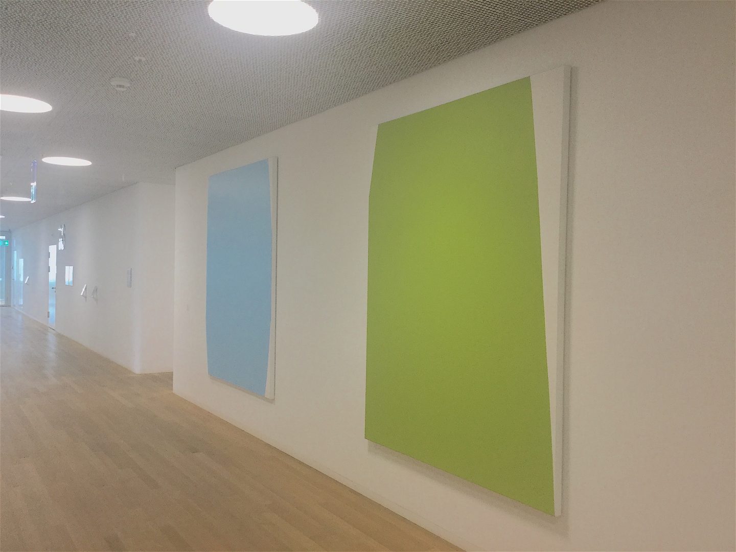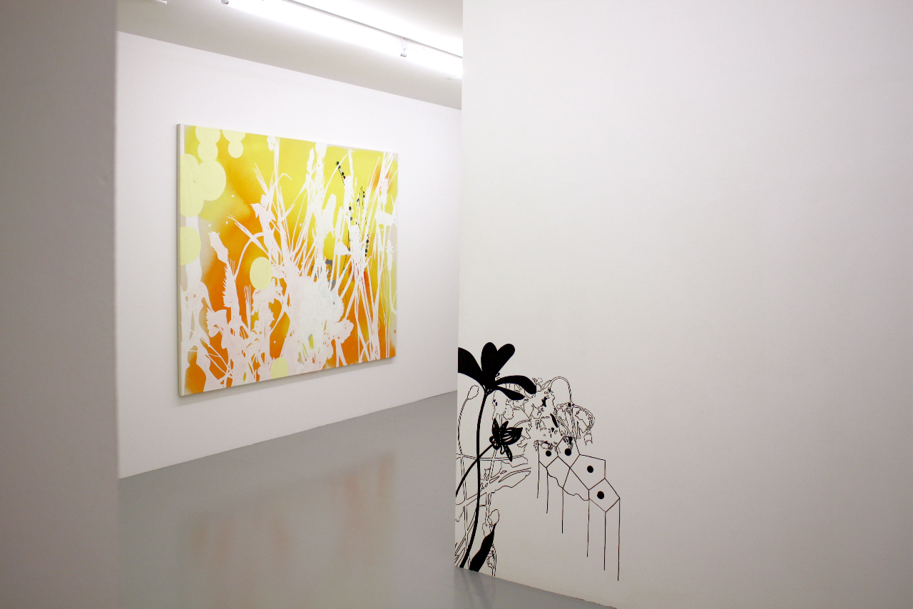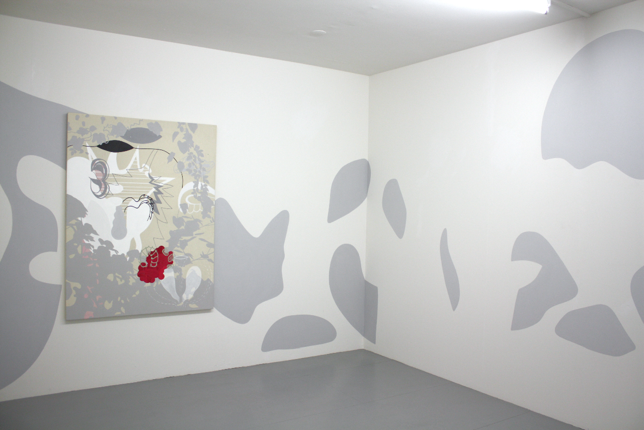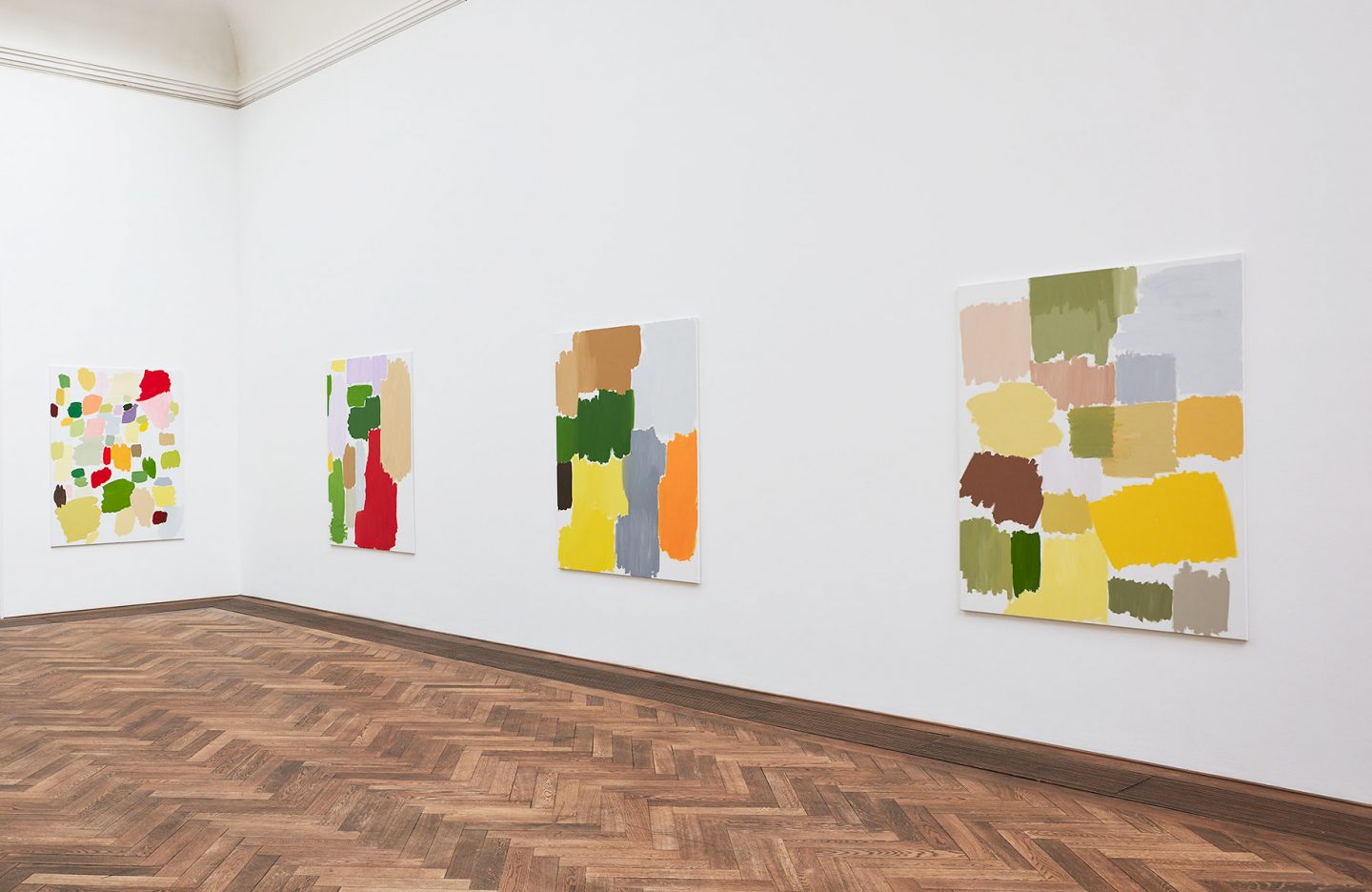 Feuilles 18W/2018, Wandmalerei, 370 x 415 cm, Ausstellungsansicht, Vanessa Billy Markus Gadient Barbara Maria Meyer Edit Oderbolz, Kunsthalle Palazzo Liestal, 2018